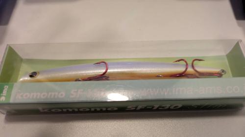 komomoのイメージを損なわずにスリムボディ化、単なるスリム化に留まらず、ボディバランスの再度見直しを計り、全長はプラス5mmの130mm。重量・全長は勿論、リップ角度アイポジションに至るまで完全新設計。125を超える飛距離とナチュラルアクション、サヨリパターンなど偏食パターンにも強い。
