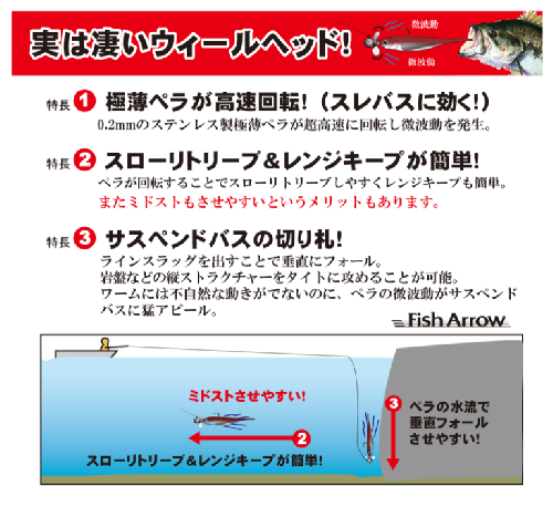 フォール&スイミングでオートマチックに誘う革命的ジグヘッド!あらゆる水深はもちろんカバーまでオートマチックに攻略可能になったペラ付きジグヘッド (PAT.P)です。