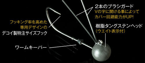 フラッシュJシャッドを使った「Jリグ」やフラッシュJでの「フラッシングミドスト」のポテンシャルを引き出す専用ジグヘッド、それが「Jヘッド」です。アラバマ系リグでは狙いにくい根掛かりの多いディープエリアやサスペンドするバスをフォーリングで果敢に狙うことができます。たとえ根掛かってもある程度フックが伸びるので回収が可能です。(強引なファイトや抜きあげ時にフックが伸びる可能性があるのでご注意ください。)