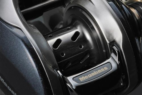 従来通りのルアーが使える事は当然として、軽量ルアーをもストレスなく投げることができ、しかもスプール強度も犠牲にしない。それが次世代のバーサタイル。メガバスのベイトリールはマグネット式のブレーキシステムを採用している。十分な耐久性はもちろん、瞬時にブレーキ設定が可能な外部調整ダイヤル、天候に左右されない安定したブレーキ力。ピンスポット値に調整できない限り最高出力を発揮しない、また時に意図に反する出力を生む他のシステムとは大きく異なり、マグネット式ブレーキならではの実戦メリットを最大限に引き出したSVは、最小限のマグダイヤルの調整だけで4g前後の軽量リグから重量級ルアーまでを文字通りストレスフリーで扱える。スプールを交換したり、サイドプレートを開けたりして、セッティングに時間を掛ける事もない。ルアーの守備範囲が一番広いSVは、陸っぱりからボートまでスタイルやフィールドを選ばない。マグネット式ブレーキの有効性を極限まで高めたSVコンセプトは、まさにバーサタイルリールの新スタンダードなのである。