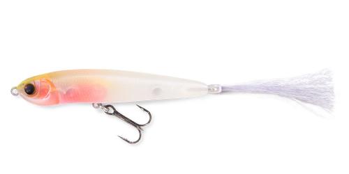 ただゆっくりと引くだけで生まれる幻惑の引き波と、卓越したスタビリティ効果が、これまでのi字系を見切ったクレバーフィッシュを的確にバイトに持ち込みます。 テールにセットした独自のフレアファイバーはキールヘッドの直進性を促進。
