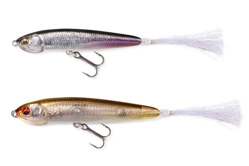 ただゆっくりと引くだけで生まれる幻惑の引き波と、卓越したスタビリティ効果が、これまでのi字系を見切ったクレバーフィッシュを的確にバイトに持ち込みます。 テールにセットした独自のフレアファイバーはキールヘッドの直進性を促進。