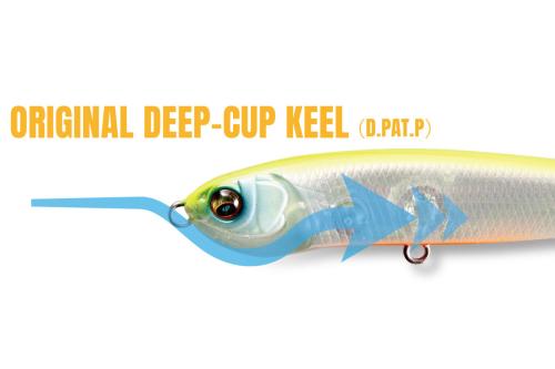 KARASHI iGは、ハイドロダイナミクスから生まれた独特なキールヘッド(D.PAT.P)により、優れた直進性能を発揮。リトリーブ速度のわずかな変化に対し、あたかも船の揺れ戻しを抑制するような、ボディの姿勢変化を的確に微調整して補正するアクションを発生。